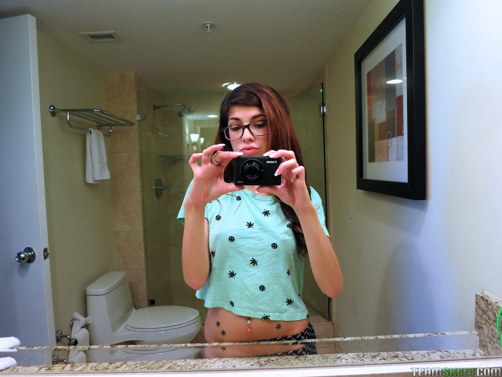 Ava Taylor has some fun taking selfies but once she looks at this cock she is ready to suck and fuck!